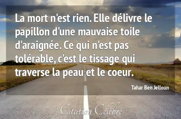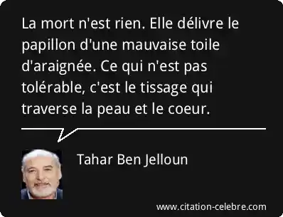 La mort n'est rien. Elle délivre le papillon d'une mauvaise toile d'araignée. Ce qui n'est pas tolérable, c'est le tissage qui traverse la peau et le coeur.