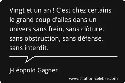 Vingt et un an ! C'est chez certains le grand coup d'ailes dans un univers sans frein, sans clôture, sans obstruction, sans défense, sans interdit.