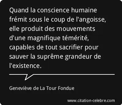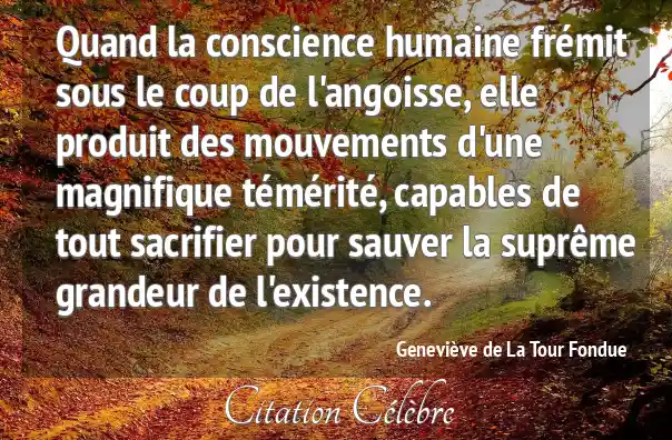 Quand la conscience humaine frémit sous le coup de l'angoisse, elle produit des mouvements d'une magnifique témérité, capables de tout sacrifier pour sauver la suprême grandeur de l'existence.