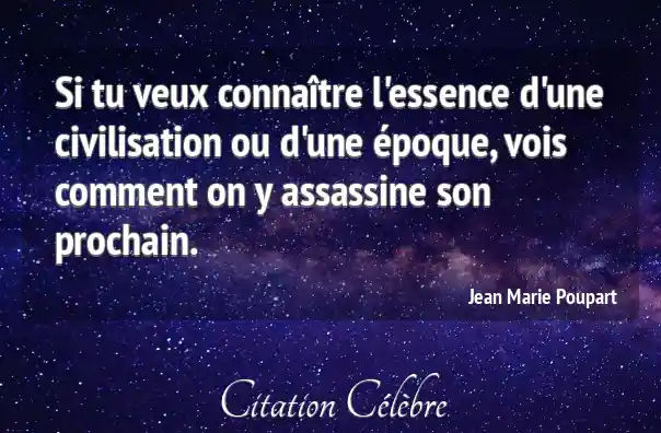 Si tu veux connaître l'essence d'une civilisation ou d'une époque, vois comment on y assassine son prochain.