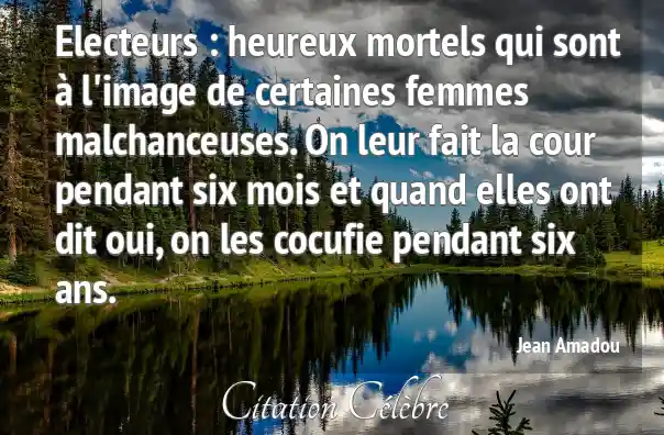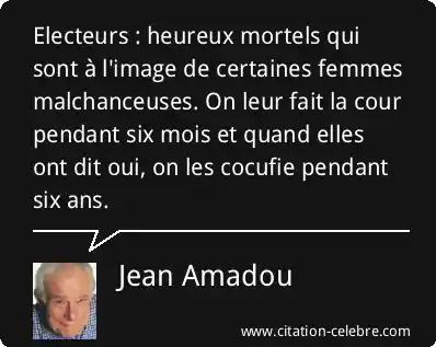 Electeurs : heureux mortels qui sont à l'image de certaines femmes malchanceuses. On leur fait la cour pendant six mois et quand elles ont dit oui, on les cocufie pendant six ans.