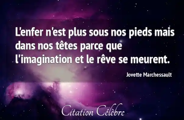 L'enfer n'est plus sous nos pieds mais dans nos têtes parce que l'imagination et le rêve se meurent.