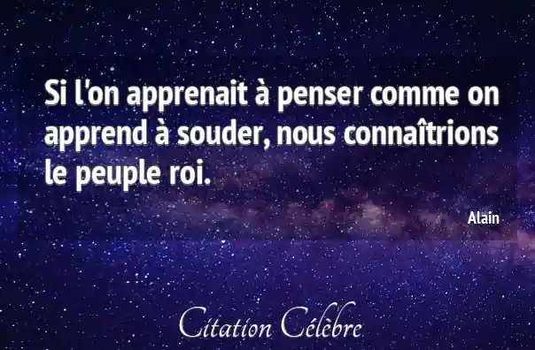 Si l'on apprenait à penser comme on apprend à souder, nous connaîtrions le peuple roi.