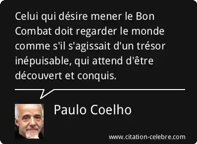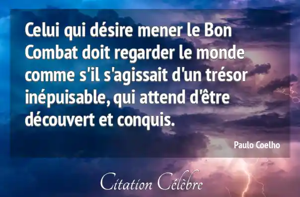 Celui qui désire mener le Bon Combat doit regarder le monde comme s'il s'agissait d'un trésor inépuisable, qui attend d'être découvert et conquis.