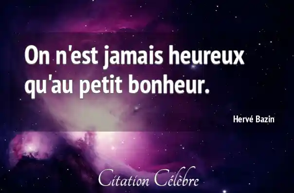 Citation Hervé Bazin bonheur : On n'est jamais heureux qu'au petit bonheur....