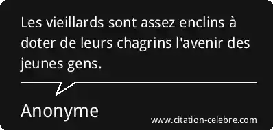 Les vieillards sont assez enclins à doter de leurs chagrins l'avenir des jeunes gens.