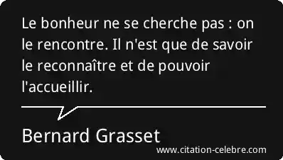Le bonheur ne se cherche pas : on le rencontre. Il n'est que de savoir le reconnaître et de pouvoir l'accueillir.