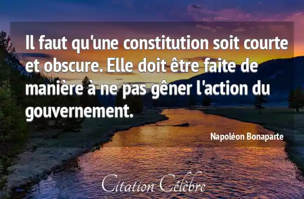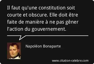 Il faut qu'une constitution soit courte et obscure. Elle doit être faite de manière à ne pas gêner l'action du gouvernement.