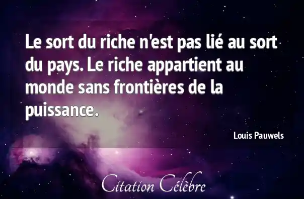 Le sort du riche n'est pas lié au sort du pays. Le riche appartient au monde sans frontières de la puissance.