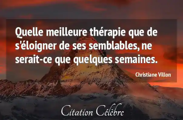Quelle meilleure thérapie que de s'éloigner de ses semblables, ne serait-ce que quelques semaines.