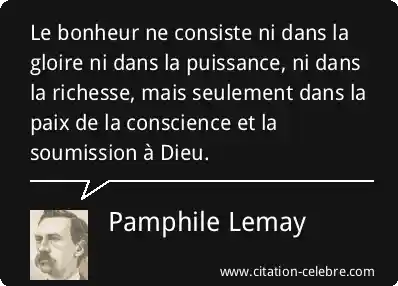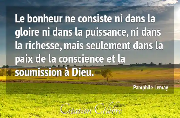 Le bonheur ne consiste ni dans la gloire ni dans la puissance, ni dans la richesse, mais seulement dans la paix de la conscience et la soumission à Dieu.
