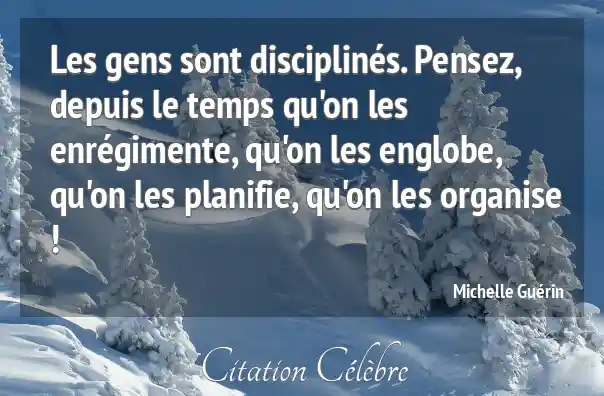 Les gens sont disciplinés. Pensez, depuis le temps qu'on les enrégimente, qu'on les englobe, qu'on les planifie, qu'on les organise !