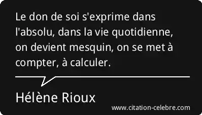 Le don de soi s'exprime dans l'absolu, dans la vie quotidienne, on devient mesquin, on se met à compter, à calculer.