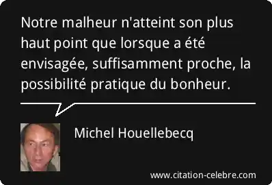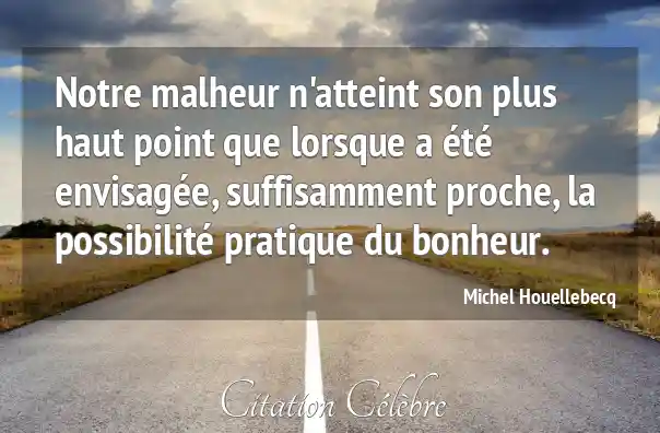 Notre malheur n'atteint son plus haut point que lorsque a été envisagée, suffisamment proche, la possibilité pratique du bonheur.