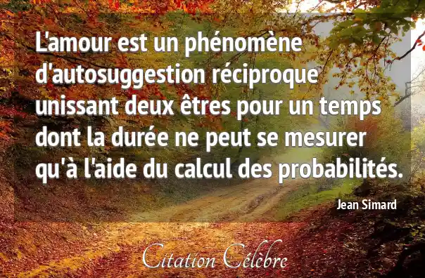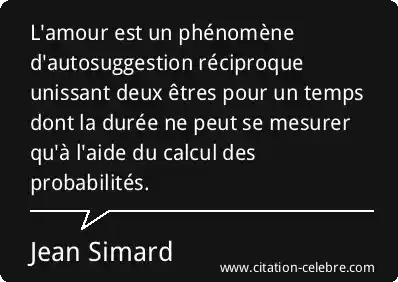 L'amour est un phénomène d'autosuggestion réciproque unissant deux êtres pour un temps dont la durée ne peut se mesurer qu'à l'aide du calcul des probabilités.