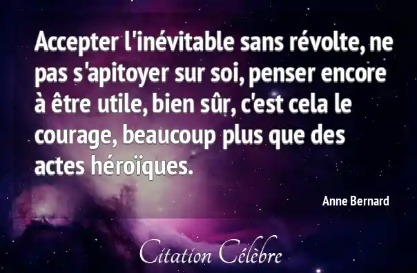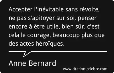 Accepter l'inévitable sans révolte, ne pas s'apitoyer sur soi, penser encore à être utile, bien sûr, c'est cela le courage, beaucoup plus que des actes héroïques.
