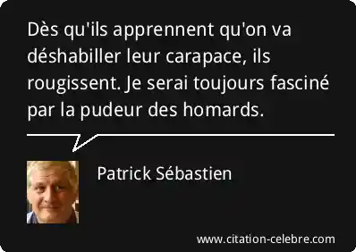Dès qu'ils apprennent qu'on va déshabiller leur carapace, ils rougissent. Je serai toujours fasciné par la pudeur des homards.