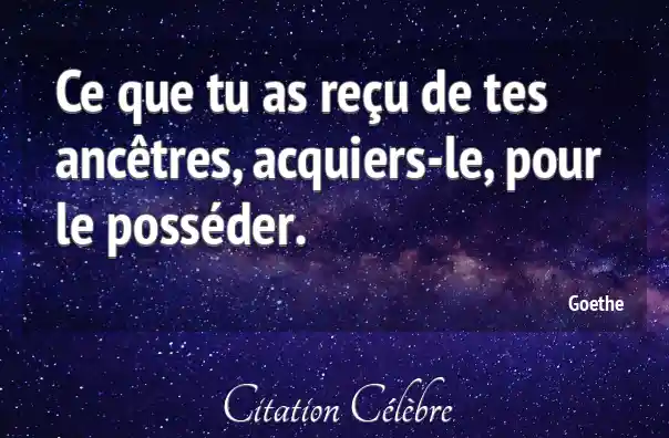 Ce que tu as reçu de tes ancêtres, acquiers-le, pour le posséder.