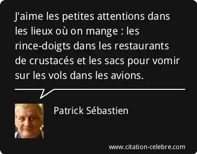 J'aime les petites attentions dans les lieux où on mange : les rince-doigts dans les restaurants de crustacés et les sacs pour vomir sur les vols dans les avions.