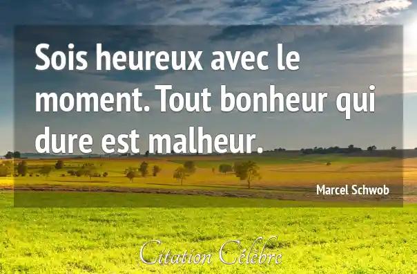 Sois heureux avec le moment. Tout bonheur qui dure est malheur.