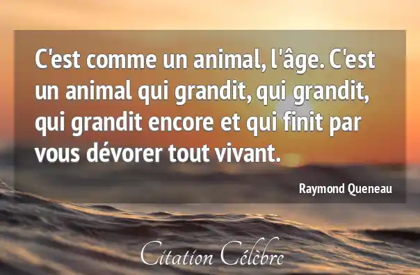 C'est comme un animal, l'âge. C'est un animal qui grandit, qui grandit, qui grandit encore et qui finit par vous dévorer tout vivant.