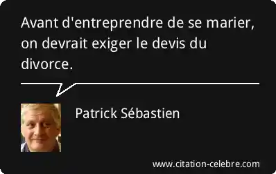 Avant d'entreprendre de se marier, on devrait exiger le devis du divorce.
