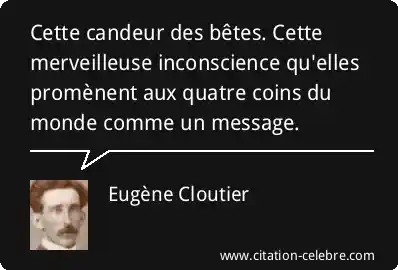 Cette candeur des bêtes. Cette merveilleuse inconscience qu'elles promènent aux quatre coins du monde comme un message.