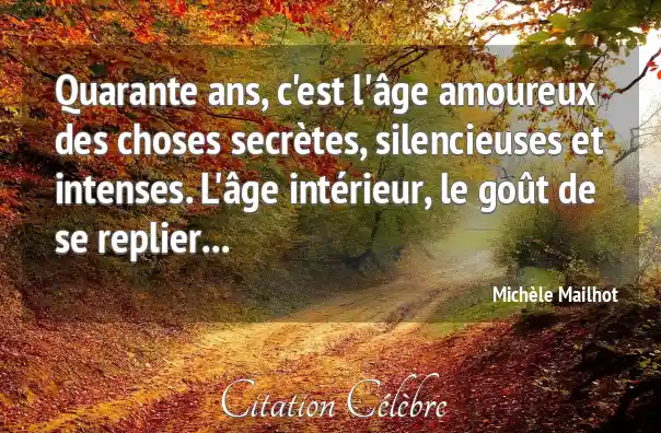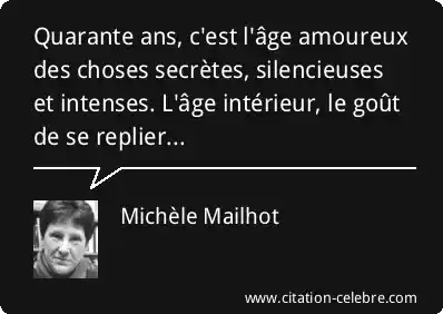 Citation Michèle Mailhot age : Quarante ans, c'est l'âge amoureux des choses secrètes, silencieuses et...