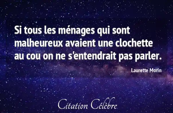 Si tous les ménages qui sont malheureux avaient une clochette au cou on ne s'entendrait pas parler.