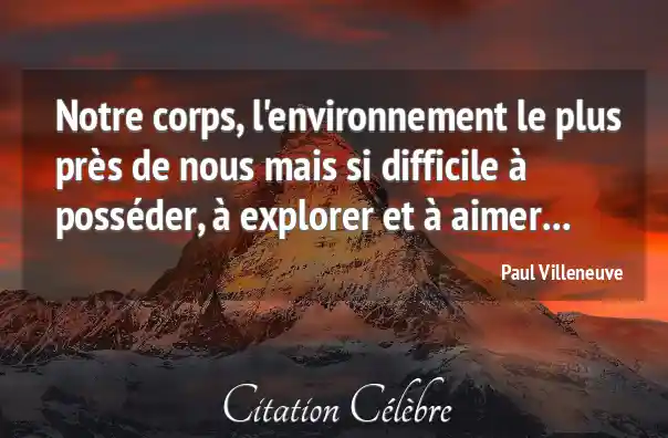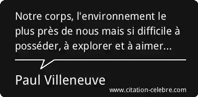 Notre corps, l'environnement le plus près de nous mais si difficile à posséder, à explorer et à aimer...