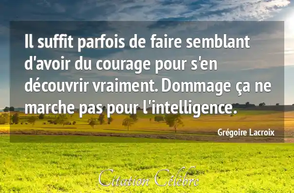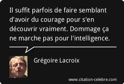 Il suffit parfois de faire semblant d'avoir du courage pour s'en découvrir vraiment. Dommage ça ne marche pas pour l'intelligence.