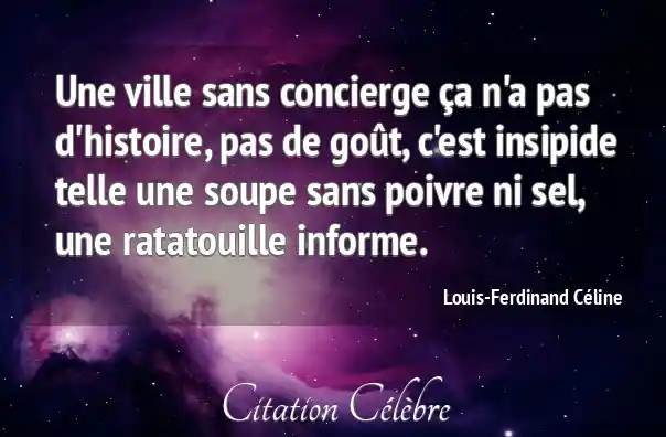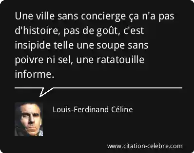Une ville sans concierge ça n'a pas d'histoire, pas de goût, c'est insipide telle une soupe sans poivre ni sel, une ratatouille informe.