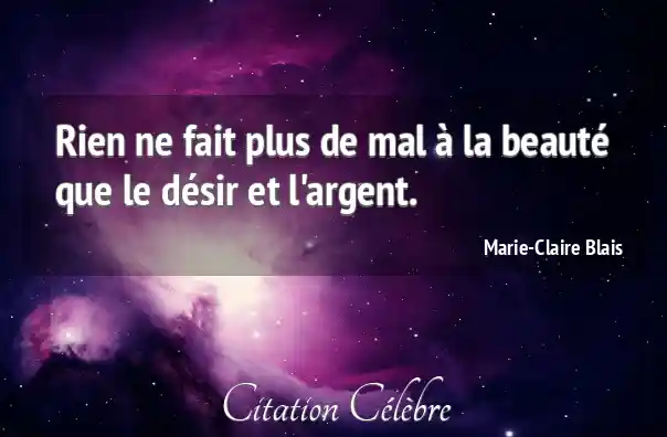 Rien ne fait plus de mal à la beauté que le désir et l'argent.