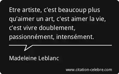 Etre artiste, c'est beaucoup plus qu'aimer un art, c'est aimer la vie, c'est vivre doublement, passionnément, intensément.