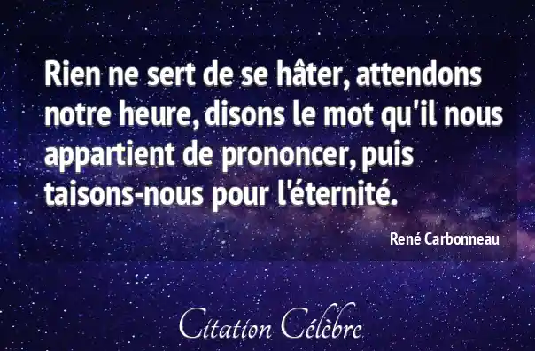 Rien ne sert de se hâter, attendons notre heure, disons le mot qu'il nous appartient de prononcer, puis taisons-nous pour l'éternité.