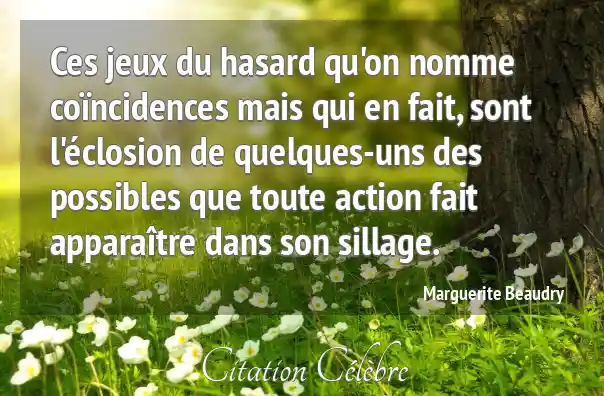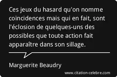 Ces jeux du hasard qu'on nomme coïncidences mais qui en fait, sont l'éclosion de quelques-uns des possibles que toute action fait apparaître dans son sillage.