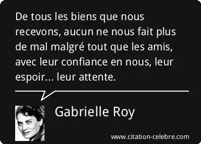 De tous les biens que nous recevons, aucun ne nous fait plus de mal malgré tout que les amis, avec leur confiance en nous, leur espoir... leur attente.