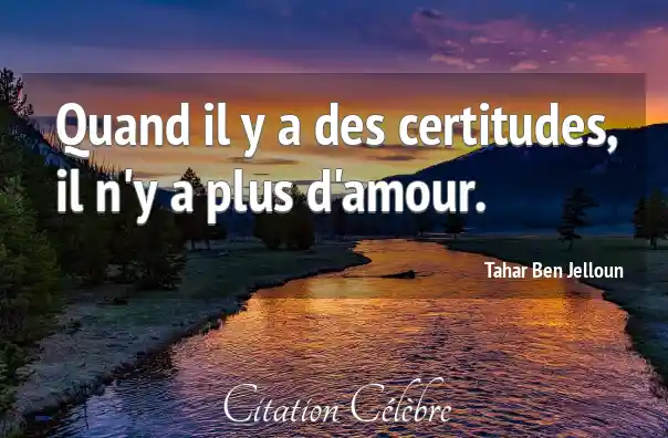 Quand il y a des certitudes, il n'y a plus d'amour.
