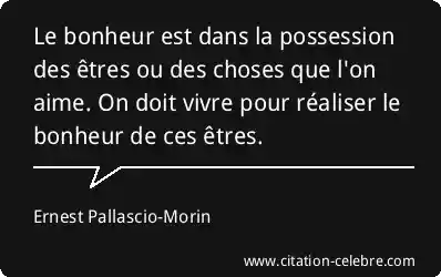 Le bonheur est dans la possession des êtres ou des choses que l'on aime. On doit vivre pour réaliser le bonheur de ces êtres.