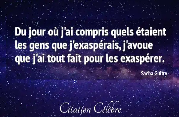 Du jour où j'ai compris quels étaient les gens que j'exaspérais, j'avoue que j'ai tout fait pour les exaspérer.