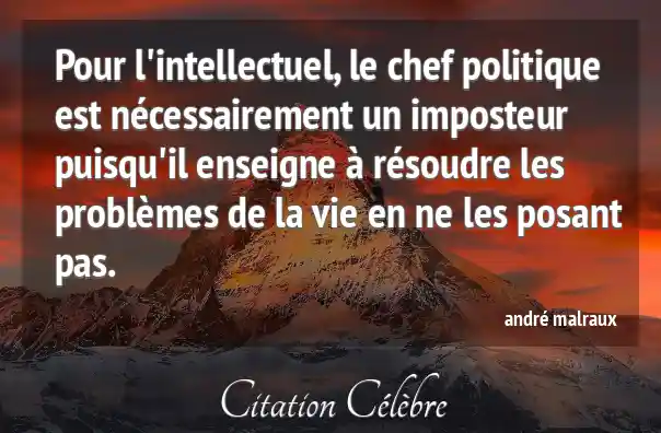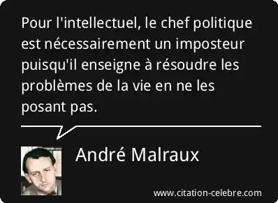 Pour l'intellectuel, le chef politique est nécessairement un imposteur puisqu'il enseigne à résoudre les problèmes de la vie en ne les posant pas.