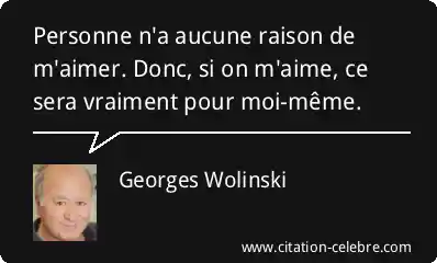 Personne n'a aucune raison de m'aimer. Donc, si on m'aime, ce sera vraiment pour moi-même.