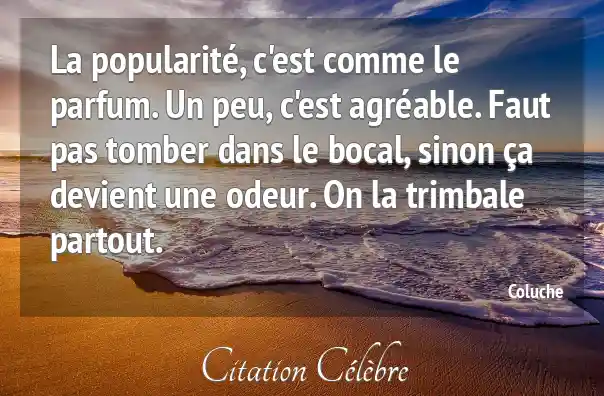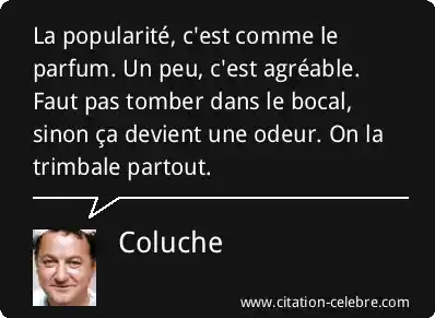 La popularité, c'est comme le parfum. Un peu, c'est agréable. Faut pas tomber dans le bocal, sinon ça devient une odeur. On la trimbale partout.