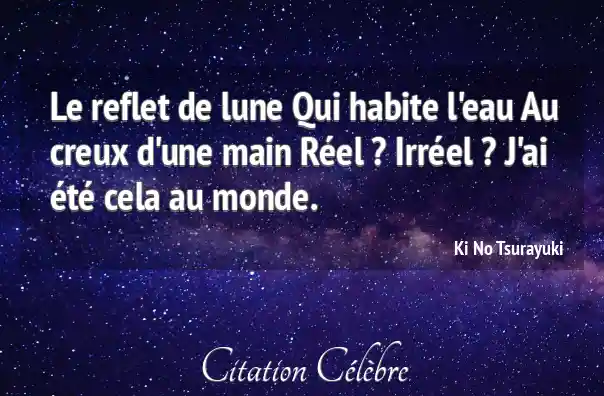 Le reflet de lune Qui habite l'eau Au creux d'une main Réel ? Irréel ? J'ai été cela au monde.