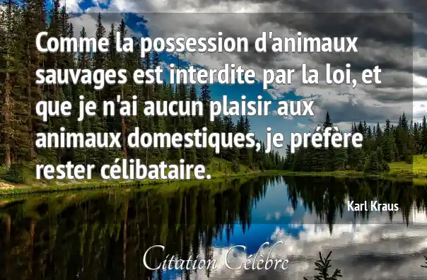 Comme la possession d'animaux sauvages est interdite par la loi, et que je n'ai aucun plaisir aux animaux domestiques, je préfère rester célibataire.