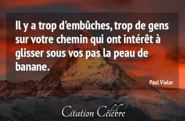 Il y a trop d'embûches, trop de gens sur votre chemin qui ont intérêt à glisser sous vos pas la peau de banane.