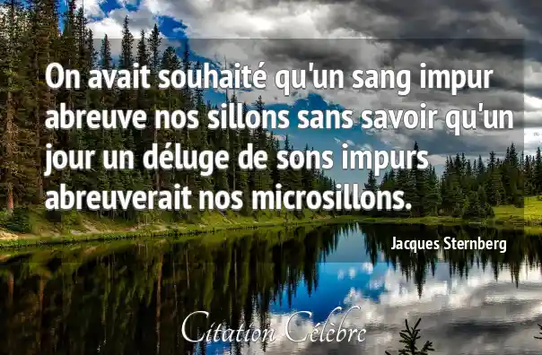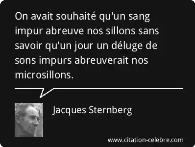 Citation Jacques Sternberg savoir : On avait souhaité qu'un sang impur abreuve nos sillons sans...