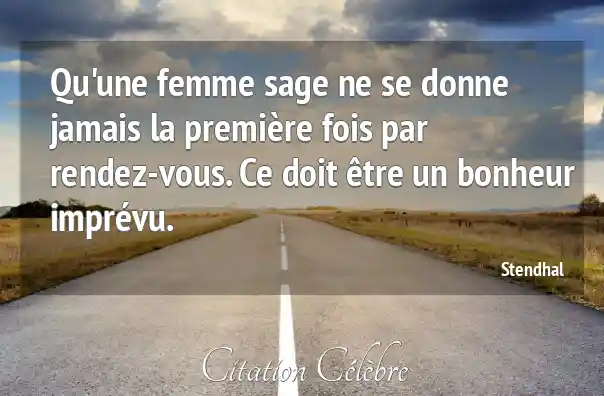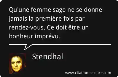 Qu'une femme sage ne se donne jamais la première fois par rendez-vous. Ce doit être un bonheur imprévu.
