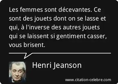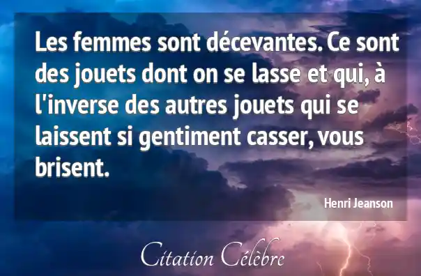 Les femmes sont décevantes. Ce sont des jouets dont on se lasse et qui, à l'inverse des autres jouets qui se laissent si gentiment casser, vous brisent.
