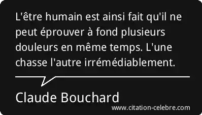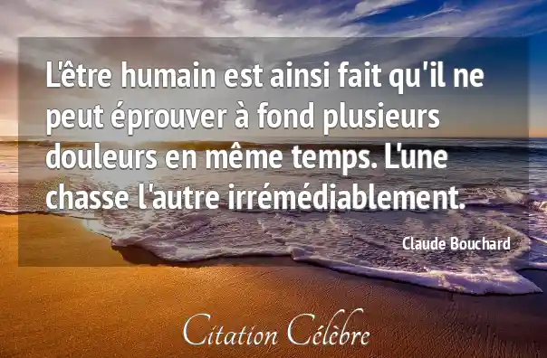 L'être humain est ainsi fait qu'il ne peut éprouver à fond plusieurs douleurs en même temps. L'une chasse l'autre irrémédiablement.